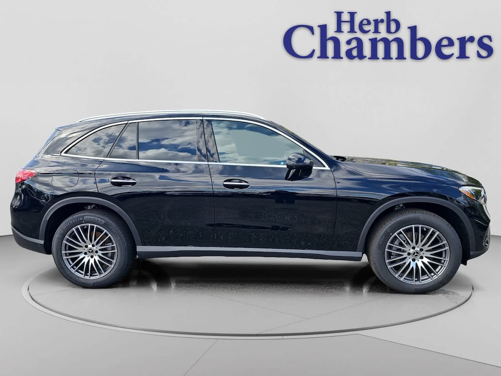 Full-Time 4MATIC® All-Wheel, Power Liftgate, Back-Up Camera, Turbocharged, Satellite Radio, iPod/MP3 Input, Onboard Communications System, Aluminum Wheels, Keyless Start, Dual Zone A/C, Hands-Free Liftgate, Brake Actuated Limited Slip Differential, WiFi Hotspot, Smart Device Integration, Apple CarPlay® Rear Spoiler, MP3 Player, Keyless Entry, Remote Trunk Release, Privacy Glass. Mercedes-Benz GLC 300 with Black interior features a 4 Cylinder Engine with 255 HP at 5800 RPM*.