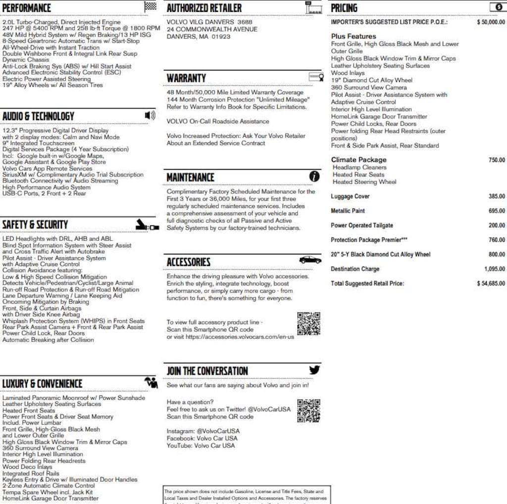 Leather Seats, Sunroof, Panoramic Roof, All Wheel Drive, Heated Driver Seat, Back-Up Camera, Satellite Radio, iPod/MP3 Input, Onboard Communications System, Keyless Start, Dual Zone A/C, Blind Spot Monitor, Smart Device Integration, Lane Keeping Assist, Apple CarPlay®. Rear Spoiler, MP3 Player, Keyless Entry, Privacy Glass, Steering Wheel Controls. Volvo Plus Dark Theme with Bright Dusk Metallic exterior and Charcoal interior features a 4 Cylinder Engine with 247 HP at 5400 RPM*. 5-Day 100% Money Back Guarantee / 30-Day 1,500 Mile Vehicle Exchange and, A complete Vehicle Portfolio & CarFax. Visit www.herbchamberssmartpricing.com for complete details. Only a Herb Chambers SMART Pricing Pre-Owned vehicle receives a rigorous Multi-Point Inspection Was $36,998.
